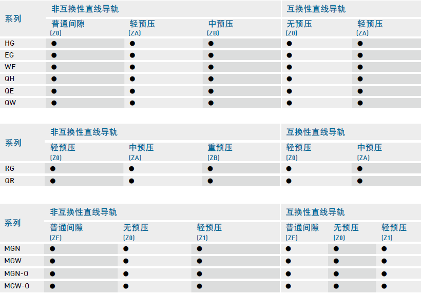 上銀直線導(dǎo)軌預(yù)壓等級(jí)表